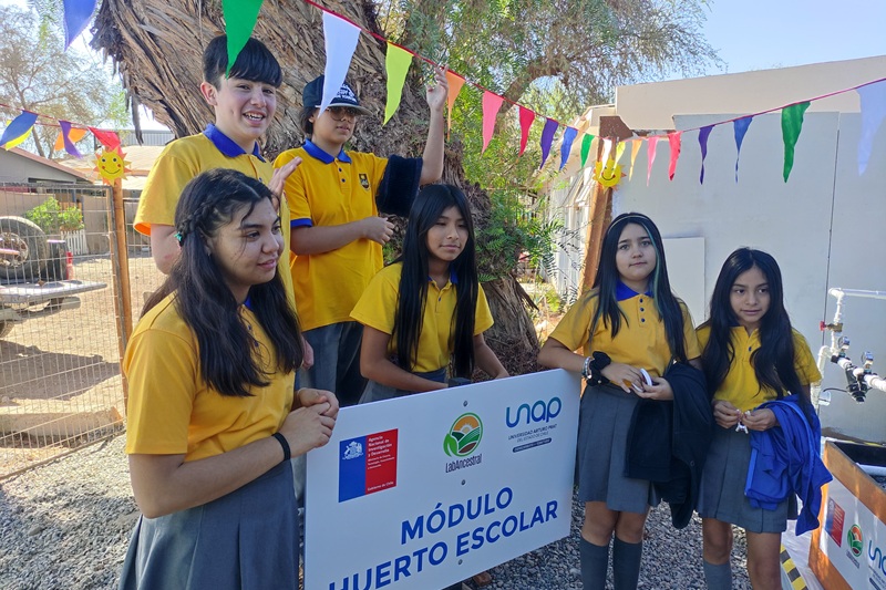 El módulo de huerto escolar fue inaugurado en la Escuela Básica de La Tirana, como parte del proyecto LabAncestral impulsado por la Universidad Arturo Prat y financiado por ANID.