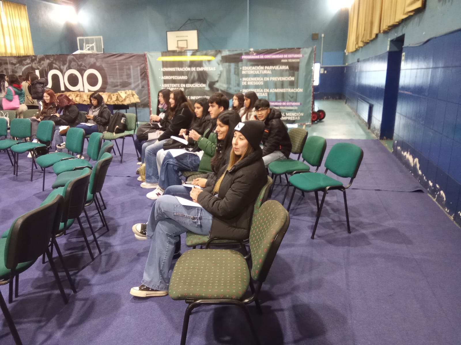 Efectuada en el Gimnasio de la UNAP, la iniciativa fue congregando gradualmente a más de un centenar de unapinas y unapinos de carreras de Pregrado y técnicas, comenzando con una bienvenida a cargo del Profesional de Acompañamiento Académico de UNIA, César Pérez Hidalgo, seguido por la relatora de la jornada y Coach profesional, Génesis Colmenares Contreras, quien desarrolló “temas que deberían tener un gran impacto en su rutina diaria, como las pausas activas anti estrés cognitivas, en donde rieron, se divirtieron y lograron salir de la rutina”, comentó.