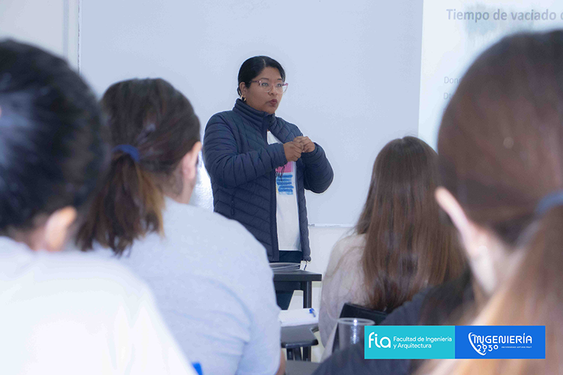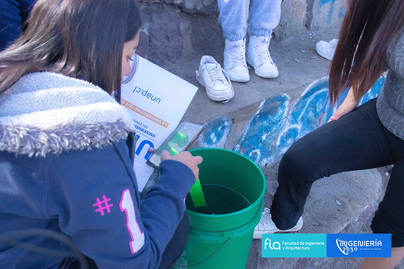 “Por lo general, en teoría, cuando nosotros trabajamos esto mismo en sala, se hace con fórmulas matemáticas. Se plantea un ejercicio donde dice: tenemos un estanque de tanta altura, se tiene un orificio de tanta altura y determine cuánto es el tiempo. Acá las chicas están viendo in situ cómo baja el fluido, cuál es la distancia de salida, cómo afecta la altura, la velocidad, entre otras variables”, expresó Paola Mamani.