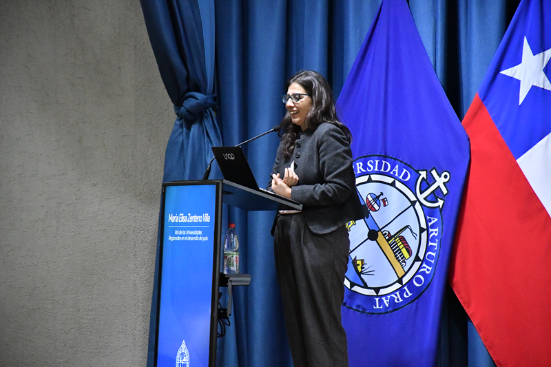 Durante el acto, María Elisa Zenteno Villa, jefa de la División de Universidades del Ministerio de Educación, dictó la clase magistral “El rol de las universidades regionales en el desarrollo del país”, enfatizando la necesidad de fortalecer la docencia, la inclusión y la equidad de género desde una mirada territorial. Mostrando como hoy se ha potenciado este rol.