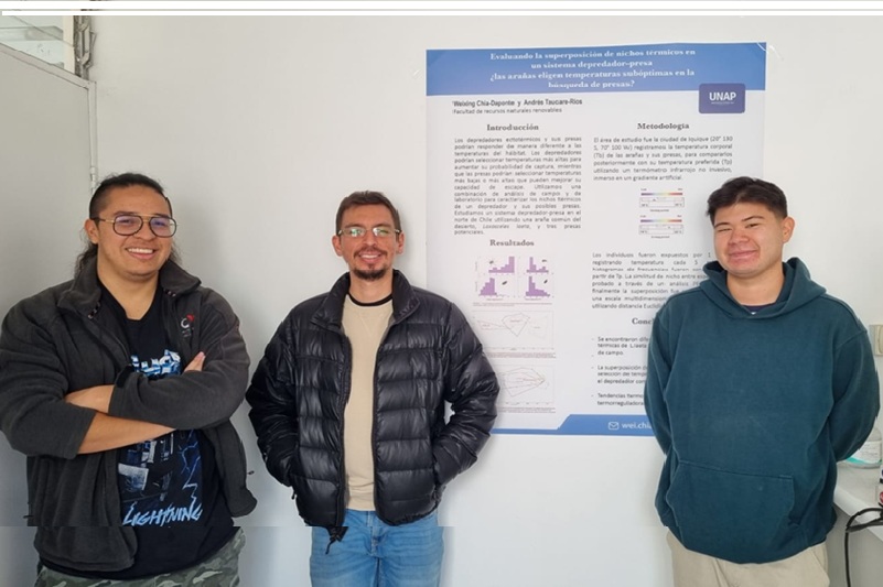 Por su parte, Cristofer Gaete Collao, estudiante de cuarto año de Ingeniería en Biotecnología, enfatizó el impacto formativo de esta experiencia “Para mí, haber hecho esta investigación con el profesor Andrés Taucare sobre cómo se comportan los nichos de temperatura en Loxosceles laeta, que son las arañas de rincón, fue una experiencia gratificante y constructiva. El profesor nos incentivó a trabajar con este tipo de presas, o posibles presas en ese momento, y fue muy enriquecedor, porque aprendí a redactar un artículo científico, a investigar de forma rigurosa y a entender realmente la importancia de la ciencia. Fue el primer paper en el que participé y sin duda ha sido un gran aporte a mi formación profesional”.