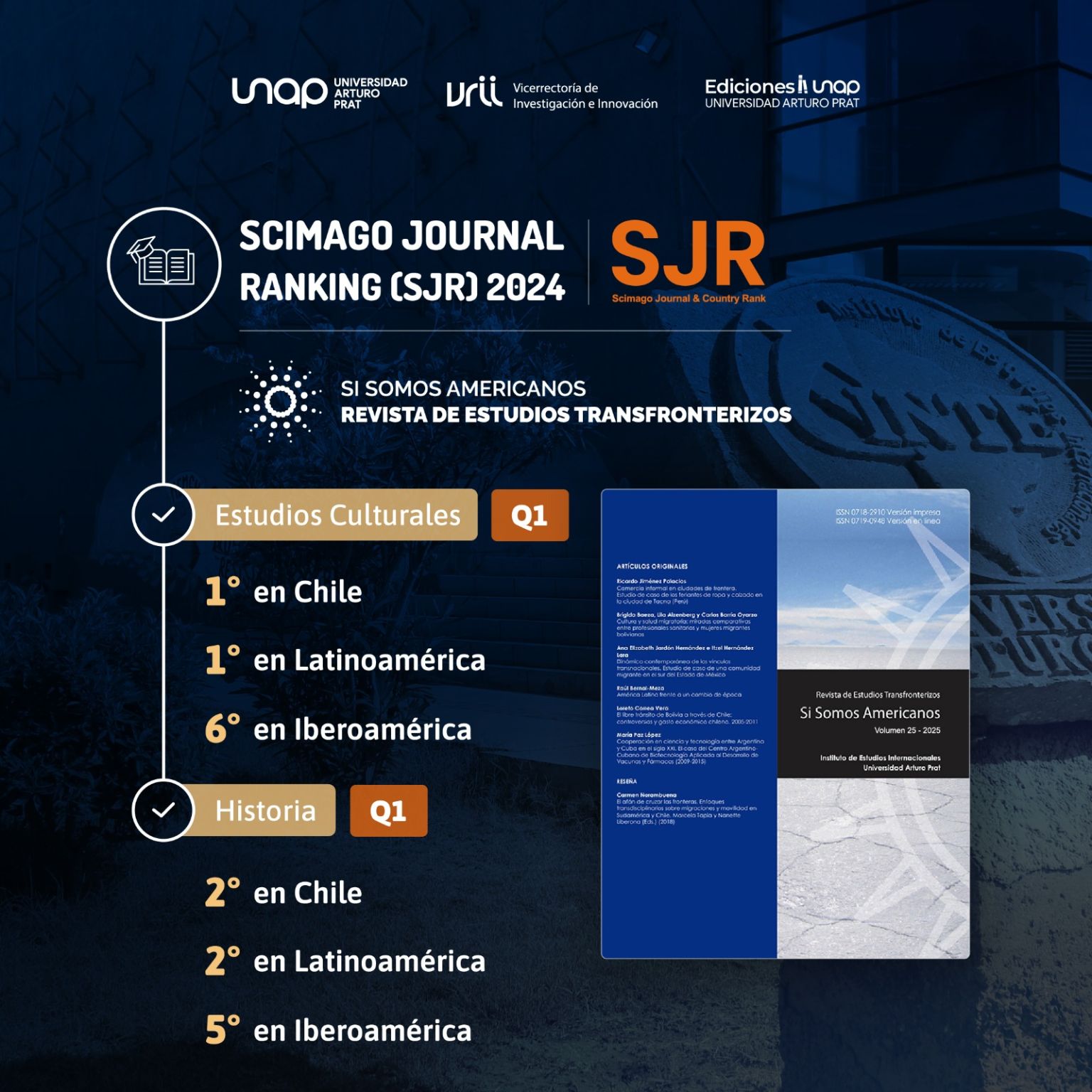 Revista Si Somos Americanos de la UNAP alcanza Cuartil Q1 en ranking SCImago y lidera en estudios culturales e historia en Latinoamérica