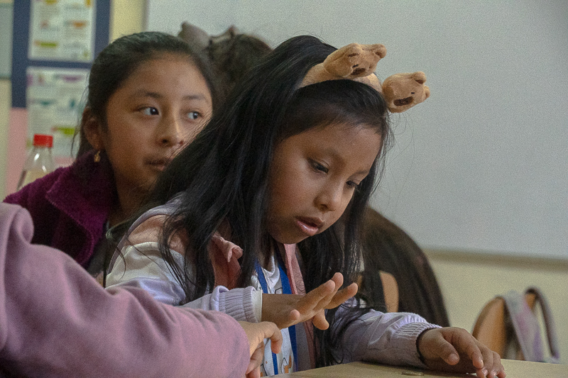“Me gusta aprender Aymara porque mi familia es Aymara, y han perdido su cultura. Cuando sea grande me gustaría mucho ser profesor de esta lengua”, dice con claridad Izán Icaza, alumno de 4° básico C. A su lado, Aylén Carrizo, de 4° básico A, asegura emocionada. “Todo es genial, aprendemos los números, los saludos, y aunque a veces es un poco difícil, quiero seguir aprendiendo para hablar con mis papás y abuelos. Yo quiero ser profesora de lenguaje”.
