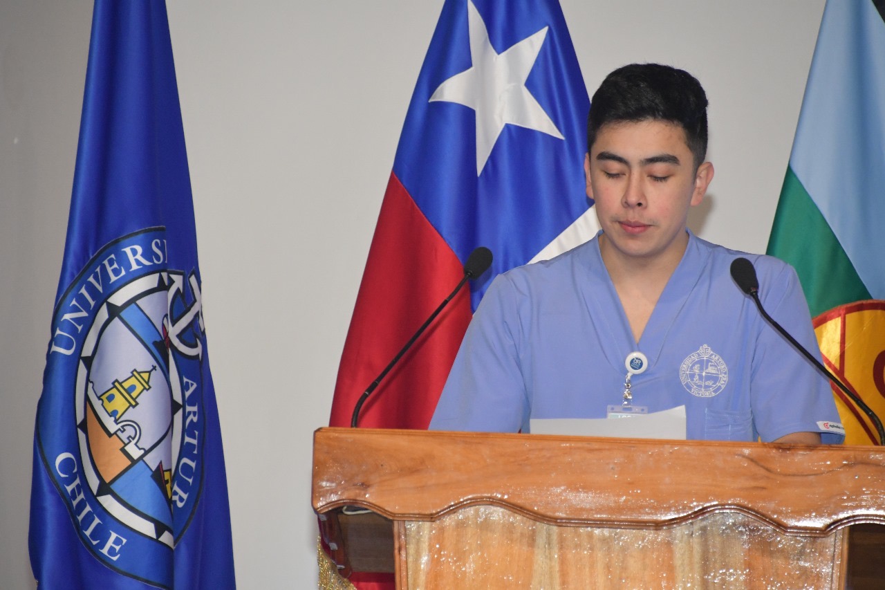 Tal como se ha dado en el pasado, el ingreso de las y los universitarios vestidos con sus uniformes y portando una vela encendida como símbolo de la luz del conocimiento marcó el comienzo de la actividad, continuada por los saludos y buenos deseos del Director de la UNAP, Juan Pablo López Pinilla; y de la Jefa de la especialidad, Jimena Hernández Faúndez; seguida de un número artístico, consistente en tres bailes de cueca, interpretados por los TNS Maximino Inostroza Salamanca y Romanet Ormeño Ormeño.