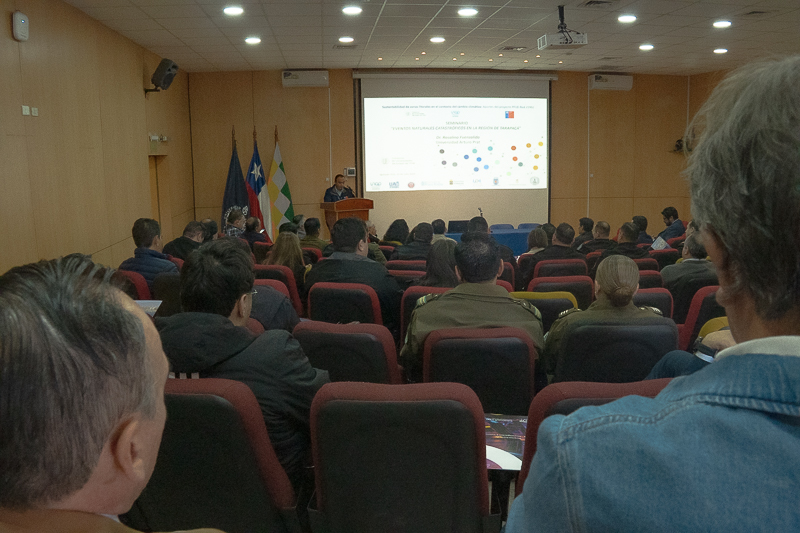 En el Salón Óscar Hahn de la Universidad Arturo Prat (UNAP), se llevó a cabo el seminario “Eventos Naturales Catastróficos en la Región de Tarapacá”, una jornada de divulgación científica organizada por la Facultad de Recursos Naturales Renovables en conjunto con la Red de Investigación en Sustentabilidad de las Universidades del Estado (RISUE) del Consorcio de Universidades del Estado de Chile (CUECH) y el Servicio Nacional de Prevención y Respuesta ante Desastres (SENAPRED).
