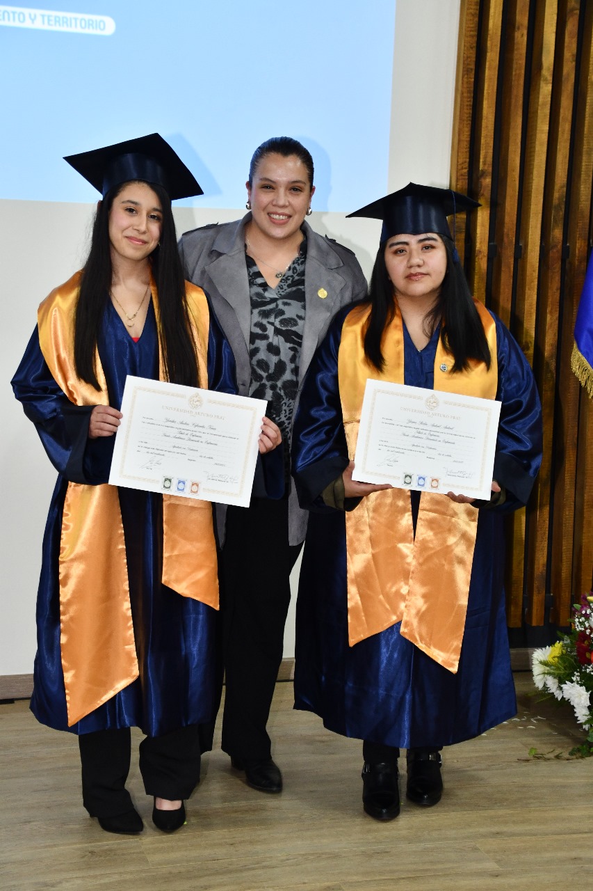 Ambas instancias no solo estuvieron marcadas por la emoción propia del momento, sino que también por la entrega de dos títulos póstumos, otorgados a Yissel Contreras Mora, de Enfermería; y a Rosa Gonzáles Hernández, de TNS en Prevención de Riesgos, los que fueron recibidos por sus conmovidos familiares, especialmente en el caso del DFT, en donde el diploma fue entregado al hijo de la unapina fallecida, Juan Pablo Canullán González, quien también estaba en la ceremonia, pero además, para titularse de TNS en Administración de Empresas, Marketing y Gestión Comercial.