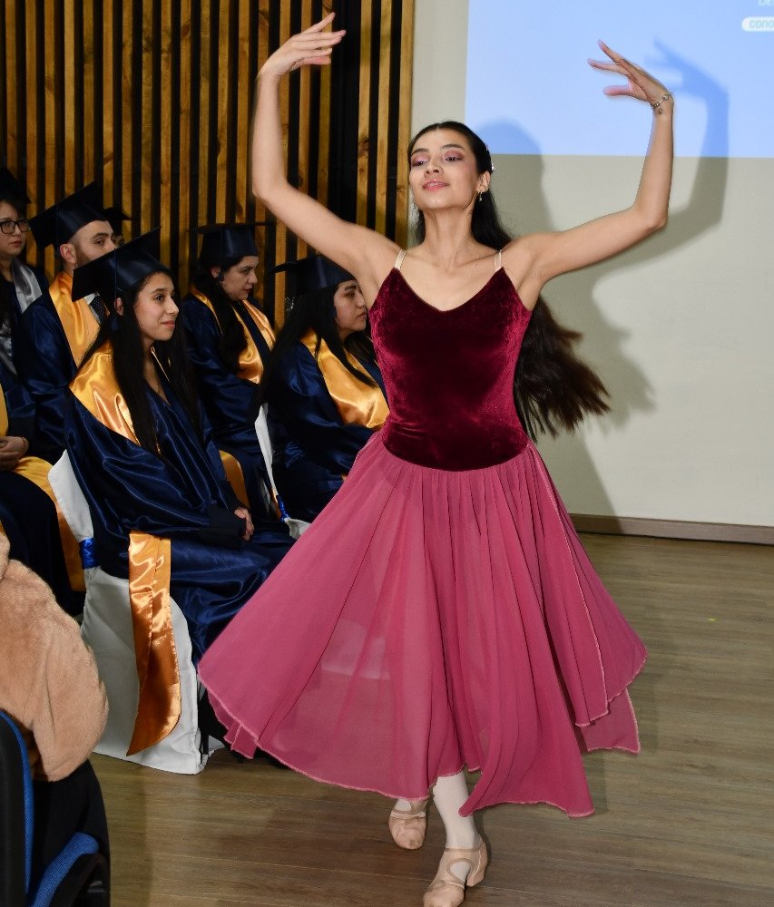 Junto con ello, ambas instancias contaron con números artísticos a cargo de la Escuela de Danza Victoria, los saludos protocolares del Director Subrogante, Daniel Martínez Lema; y del Director de Sede, Juan Pablo López Pinilla; sumado a la toma del juramento de rigor por el Ministro de fe, Rubén Sotomayor Durán; el reconocimiento al mérito académico, concedido a Cristian Velásquez Palomo, de Ingeniería Comercial mención Administración de Empresas; y Savka Jorquera Molinet, de TNS en Asistente en Educación de Párvulos; además de los discursos de despedida de las y los titulados, pronunciados por Cristian Velásquez y Yinett Franco Escobar, esta última, de TNS Asistente en Educación de Párvulos, quienes agradecieron tanto a la Casa de Estudios en su conjunto como a sus familiares por la orientación y el apoyo entregado durante todos estos años.
