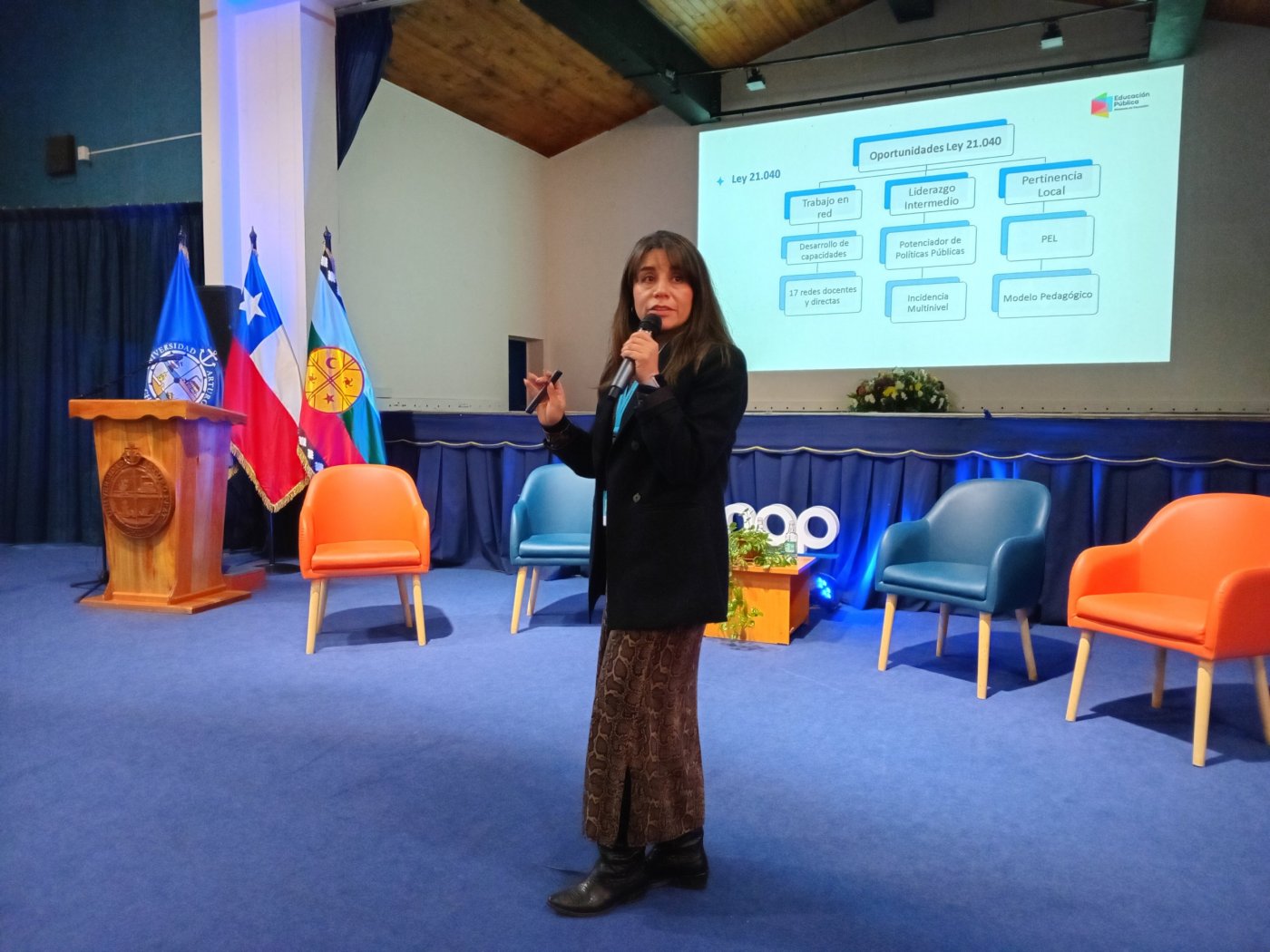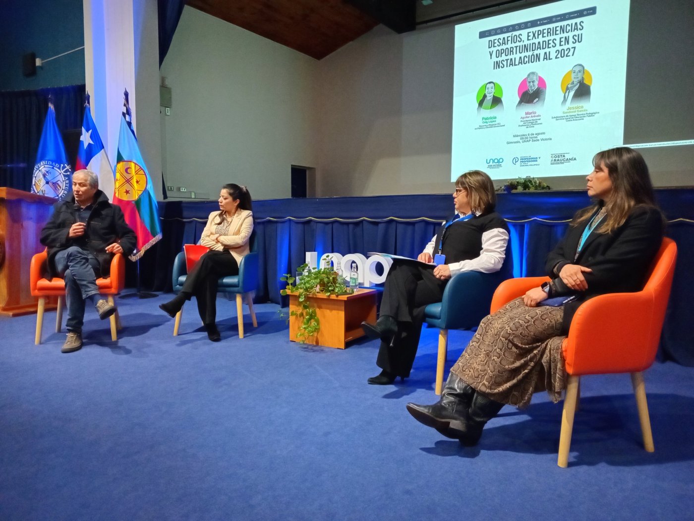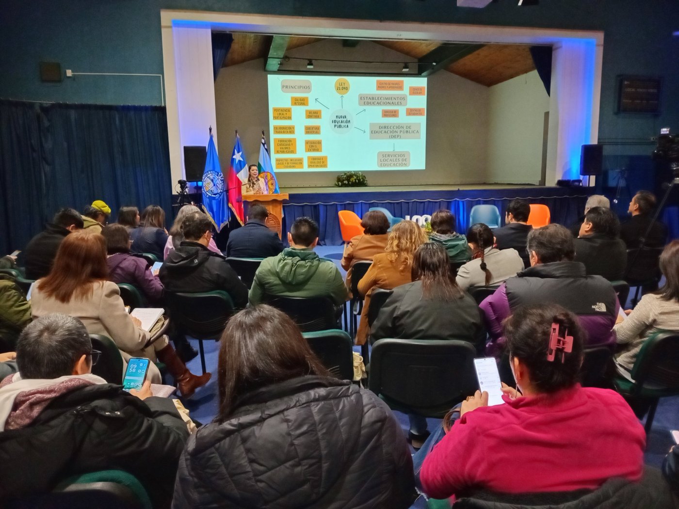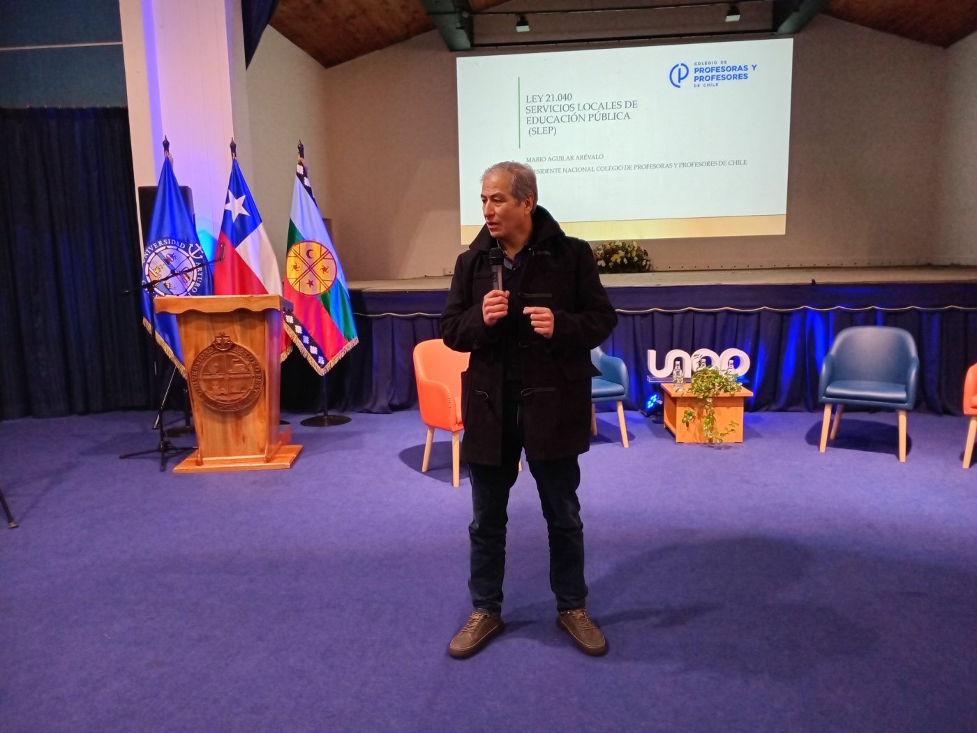 Tras ello, las exposiciones comenzaron de inmediato con los “Servicios Locales de Educación Pública: principios, organización y órganos de participación”, por la Docente y candidata a Magíster en Política y Gestión Educacional de la Universidad de Talca, Patricia Cely López; “Experiencia de liderazgo intermedio en Costa Araucanía: oportunidades desde la nueva educación pública”, a cargo de la Subdirectora de Apoyo Técnico‑Pedagógico del Servicio Local de Educación Pública Costa Araucanía (SLEPCA), Jéssica Sandoval Garcés; y “Ley 21.040: Servicios Locales de Educación Pública (SLEP)”, dictada por el Presidente Nacional del Colegio de Profesoras y Profesores de Chile, Mario Aguilar Arévalo.