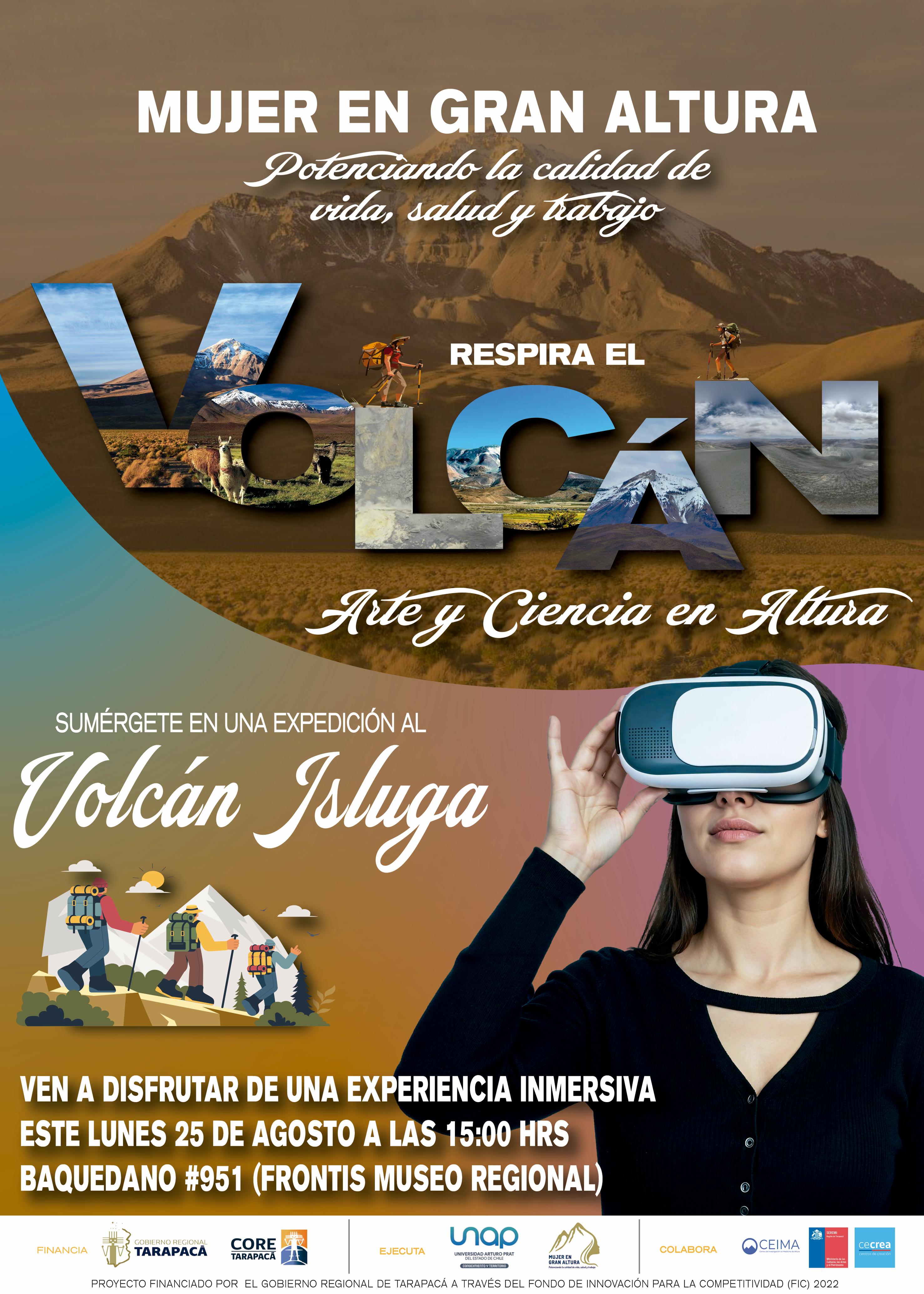 En el marco de una actividad pedagógica única en su tipo, el proyecto FIC Mujer en Gran Altura, en colaboración con CECREA Iquique, invita a la comunidad a participar de “Respira el Volcán: Arte y Ciencia en Altura”, una innovadora experiencia educativa de realidad virtual que simula una expedición al Volcán Isluga.