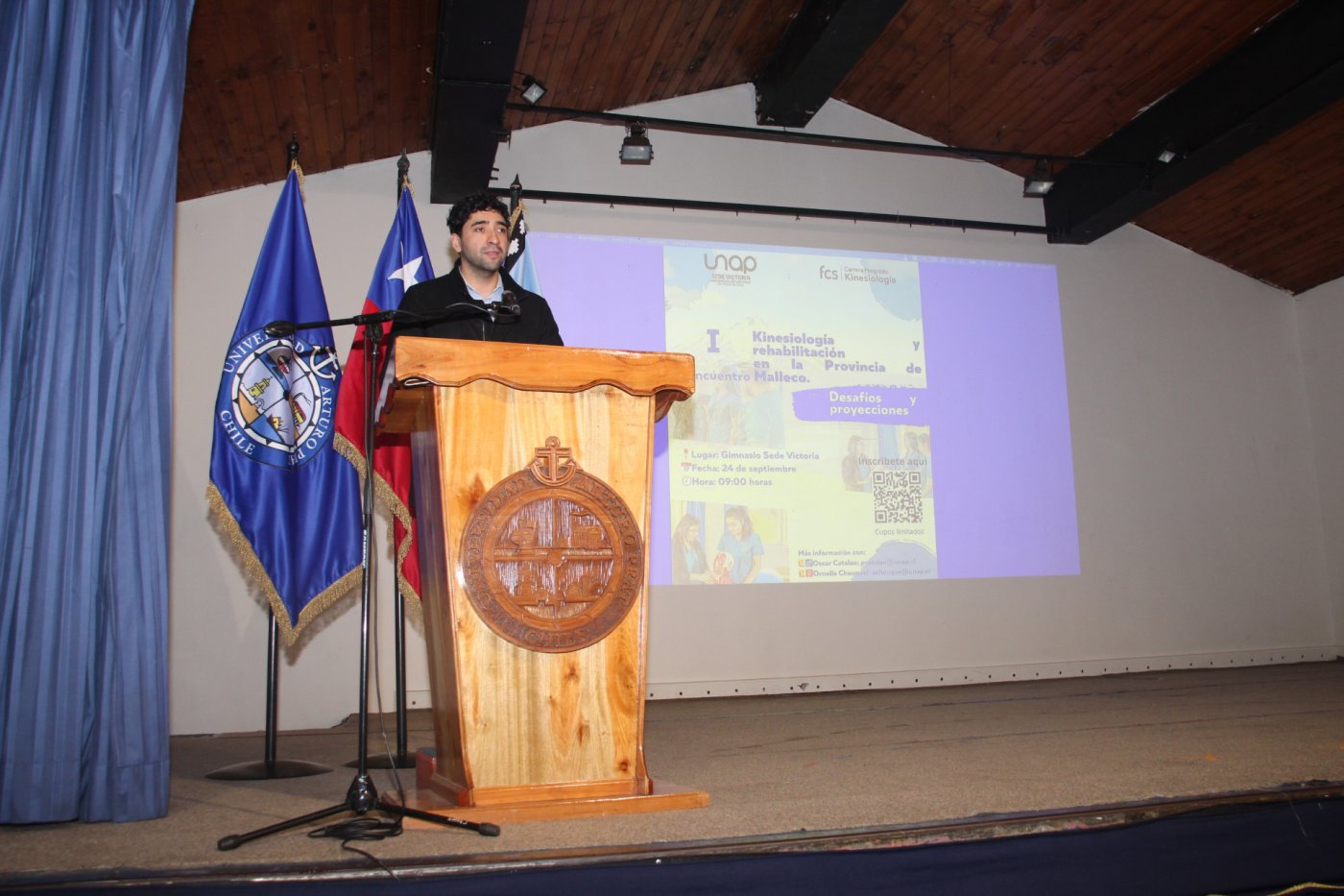 Desarrollado en el Gimnasio, el evento inició con los saludos protocolares del Director Juan Pablo López Pinilla y del Jefe de la especialidad, Carlos Sepúlveda Mancilla; pasando de inmediato a los numerosos expositores invitados, como Andrea Salgado Levio, Kinesióloga del Hospital San José de Victoria; la también Kinesióloga Bárbara Lagos Ramírez, la Terapeuta ocupacional Camila Cerna Melo y el Fonoaudiólogo Erwin Erices Ortega; la Kinesióloga Coordinadora del Programa de Atención Integral al Desarrollo Infanto Adolescente (AIDIA), Mónica Oyarzún Cabezas; la Kinesióloga de la Clínica CADS Kinexpert, Javiera Concha Gutiérrez; la Fonoaudióloga Andrea Figueroa Arce y el Kinesiólogo Claudio Villagrán Valenzuela del Hospital de Collipulli; la Kinesióloga de la Clínica Medifis, Dominique Patri Alcalde; y finalmente, la Kinesióloga de CADS Kinexpert y Académica de la carrera en la UNAP, Ornella Cheuquel Jara.