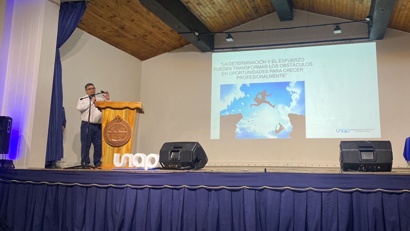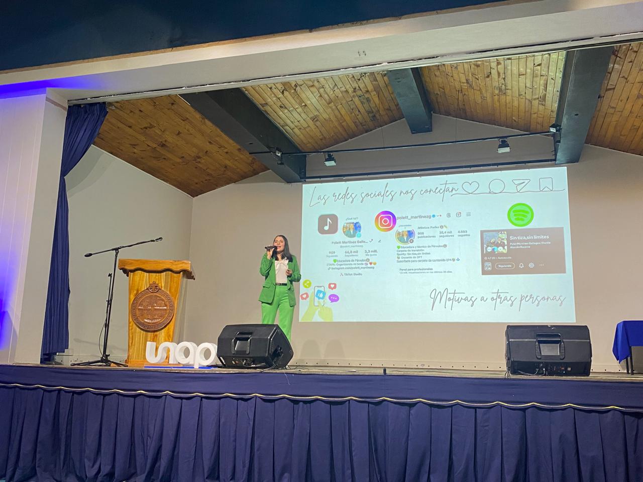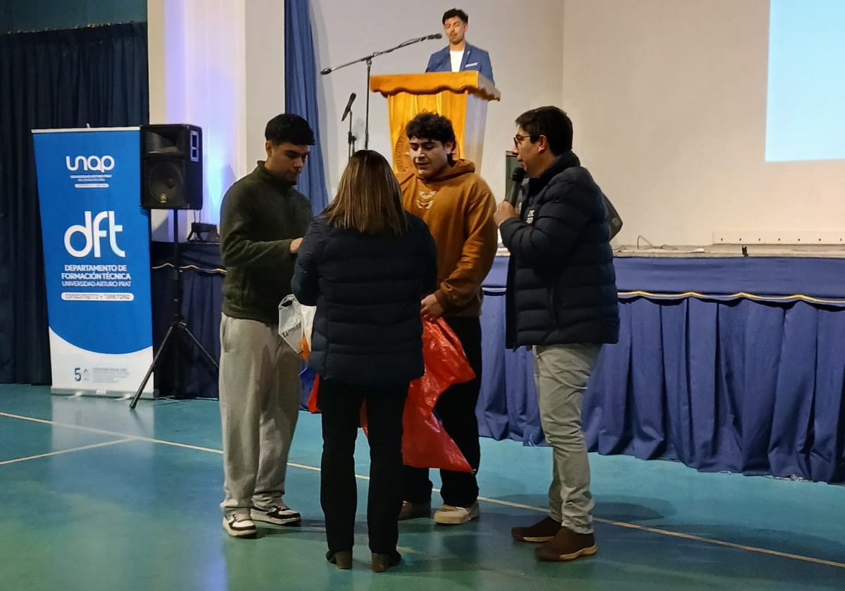 El evento llegó así al bloque de las exposiciones, en donde dos profesionales formados en el DFT quisieron compartir sus testimonios de vida con las presentaciones: “Tu mayor obstáculo es tu oportunidad para crecer”, del Técnico e Ingeniero en Prevención de Riesgos, Cristian Córdova Arriagada; y “Entre desafíos y logros: aprendizajes con sentido”, de la Educadora de Párvulos con mención en interculturalidad y vinculación familiar comunitaria, Polet Martínez Gallegos; pasando al final de la ceremonia con palabras de agradecimiento del Director de la UNAP, Juan Pablo López Pinilla, terminando el encuentro de manera novedosa con una serie de competencias organizadas por las especialidades del Departamento de Formación Técnica, como carreras en saco, la sillita musical y “si se la sabe, cante”, lo que fascinó a la concurrencia.