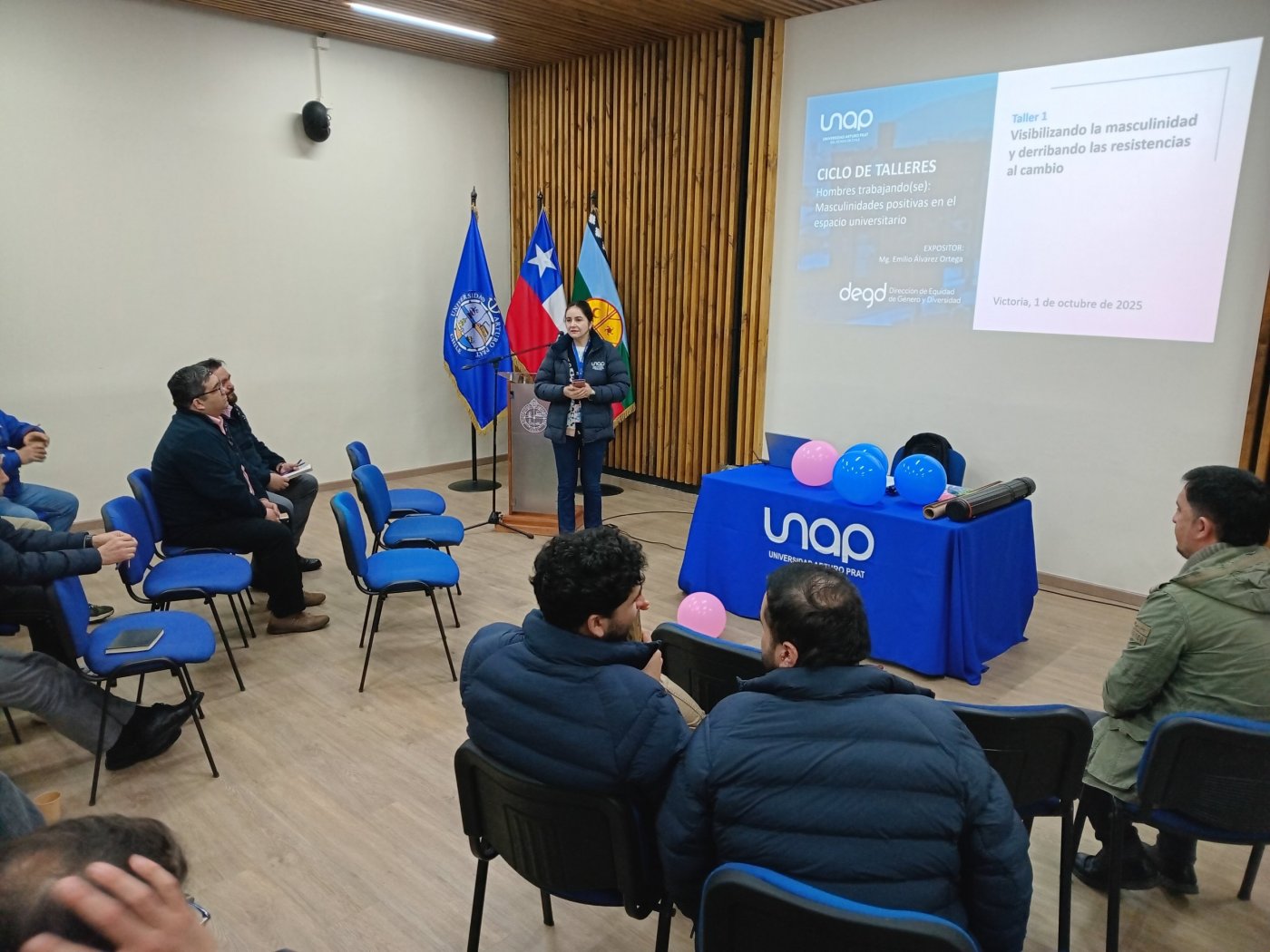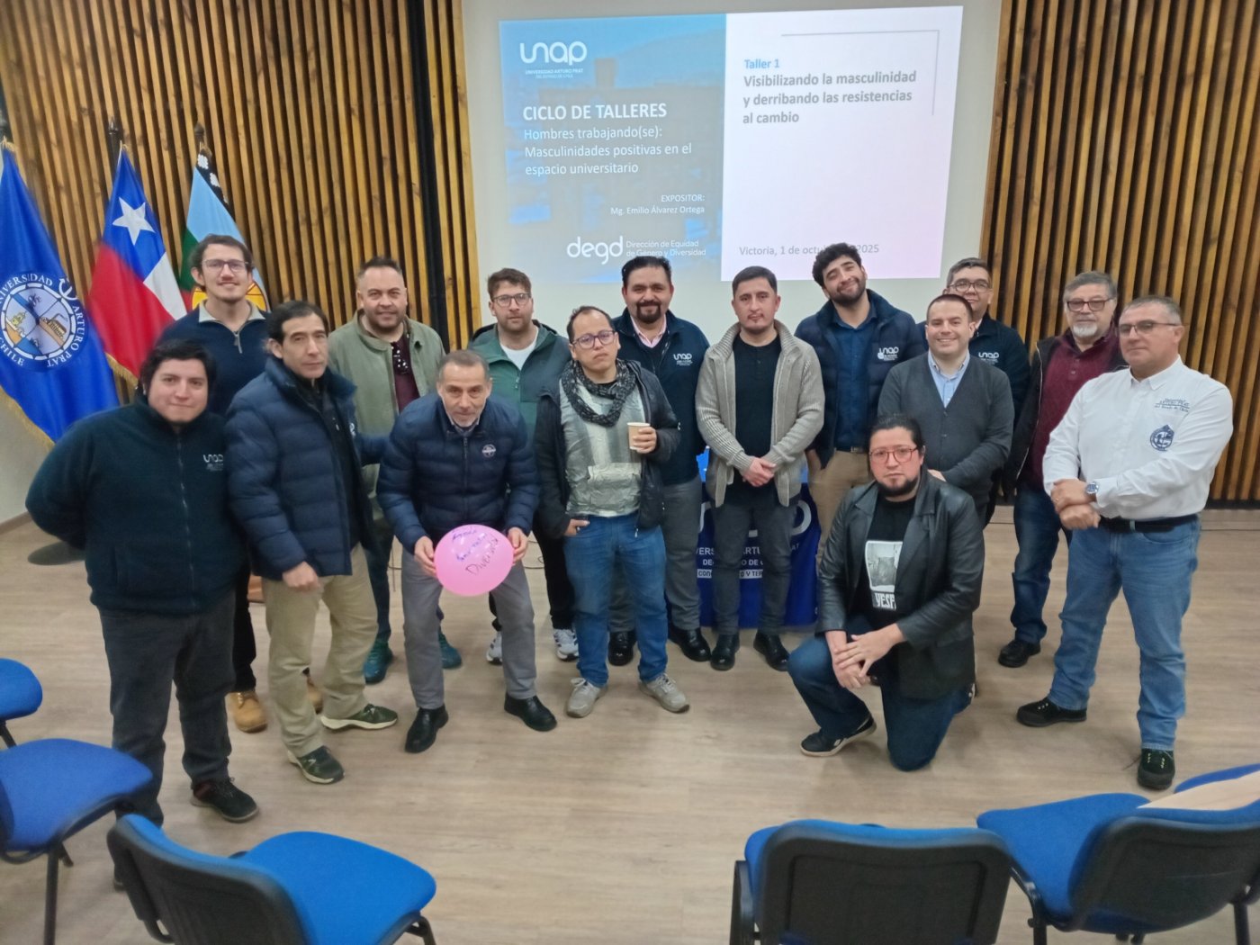 Fue a través de enseñanzas teóricas y de ejercicios prácticos que un grupo de funcionarios de la Universidad Arturo Prat Sede Victoria se involucraron en la novedosa iniciativa “Hombres trabajando(se): Masculinidades positivas en el espacio universitario”, ciclo de talleres generado desde la Dirección de Equidad de Género y Diversidad (DEGD) de la UNAP e implementado por primera vez en Malleco.