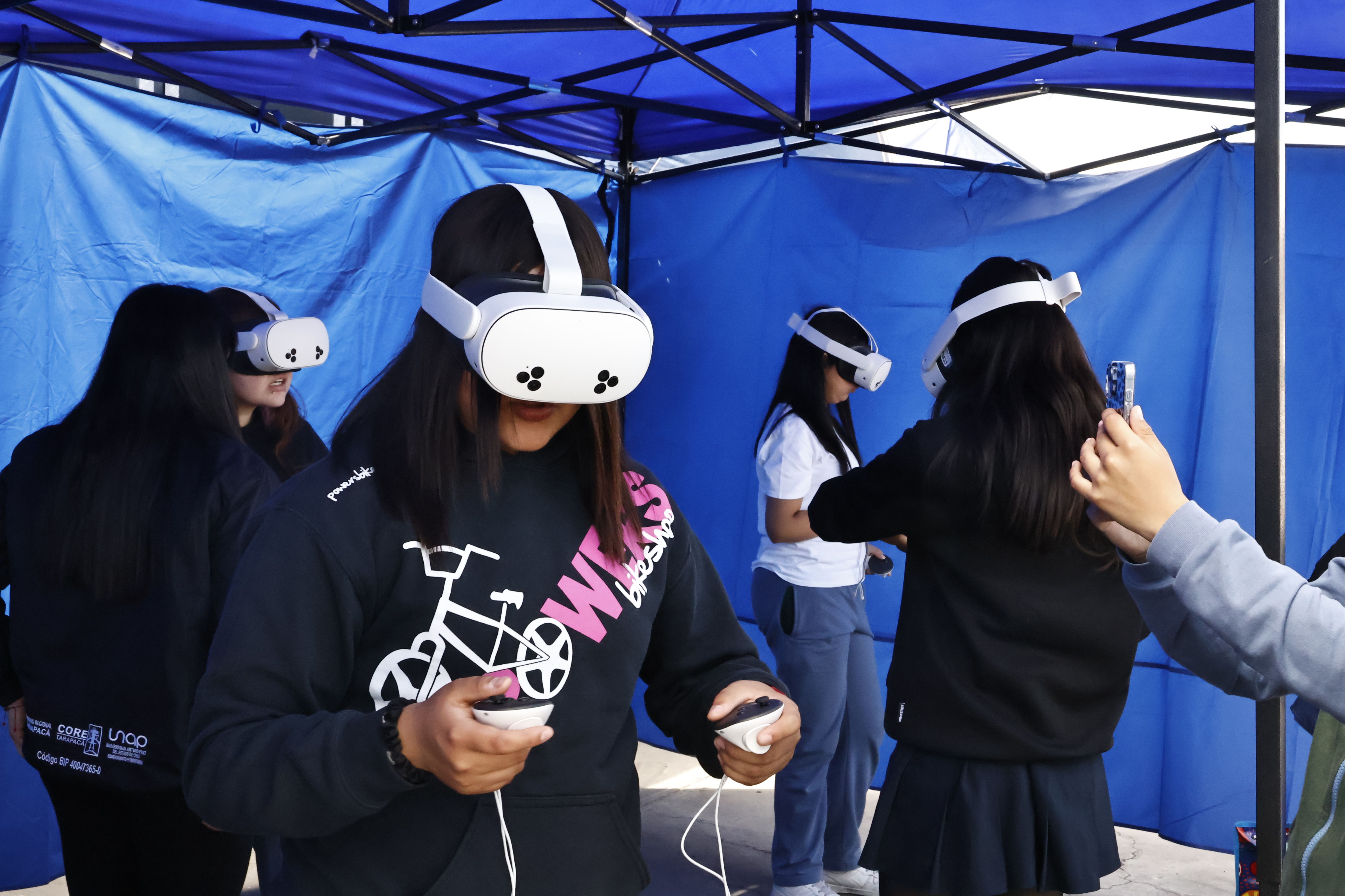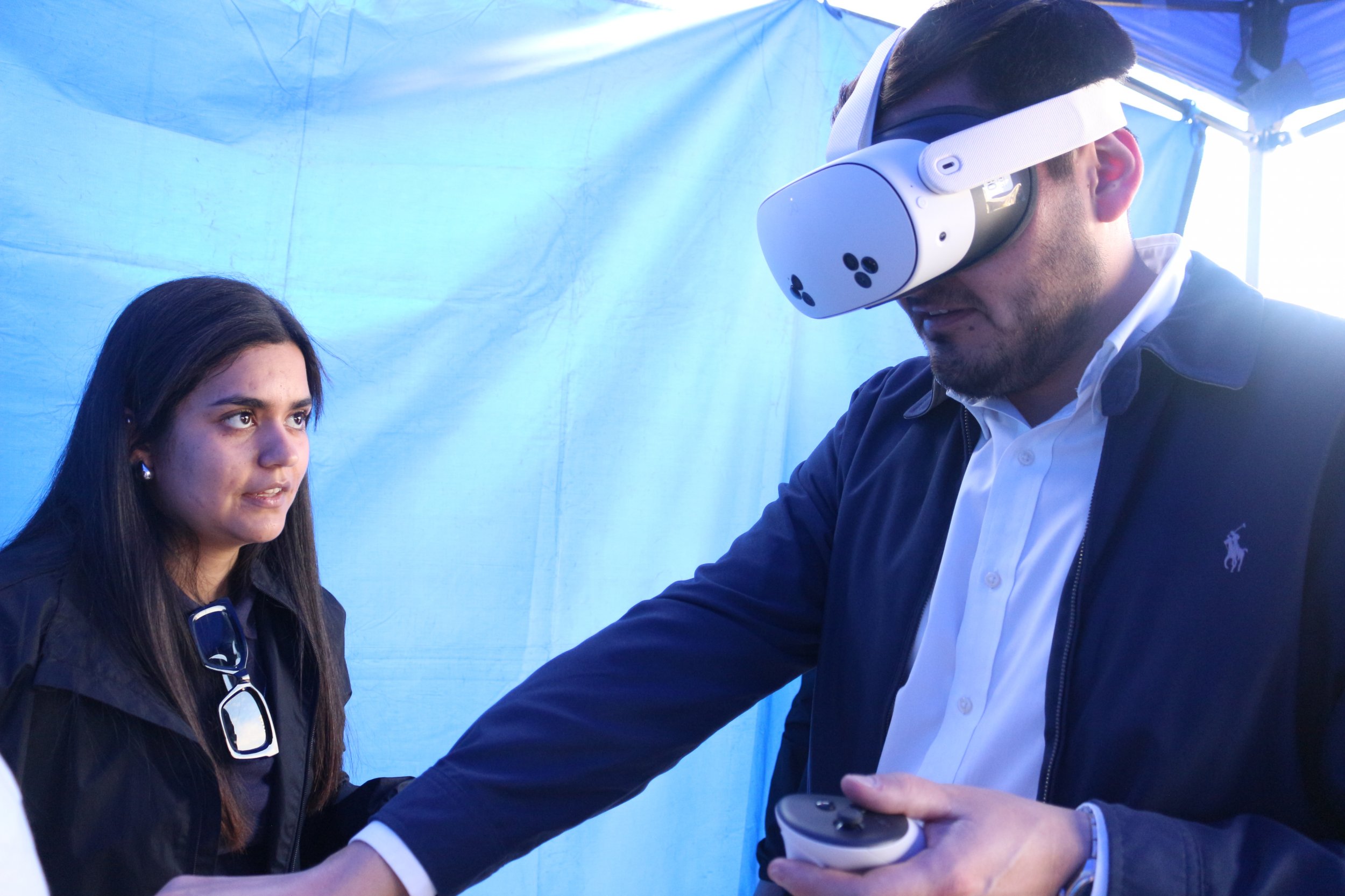 Otro de los stands fue el del proyecto de realidad virtual presentado por CEIMA, que permitió a escolares y asistentes vivir una simulación inmersiva del ascenso al Isluga. La plataforma incluyó un asistente virtual, monitoreo de variables fisiológicas y contenidos educativos sobre salud en altura.