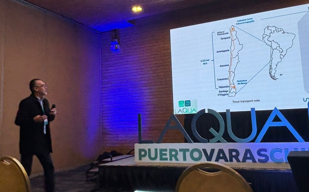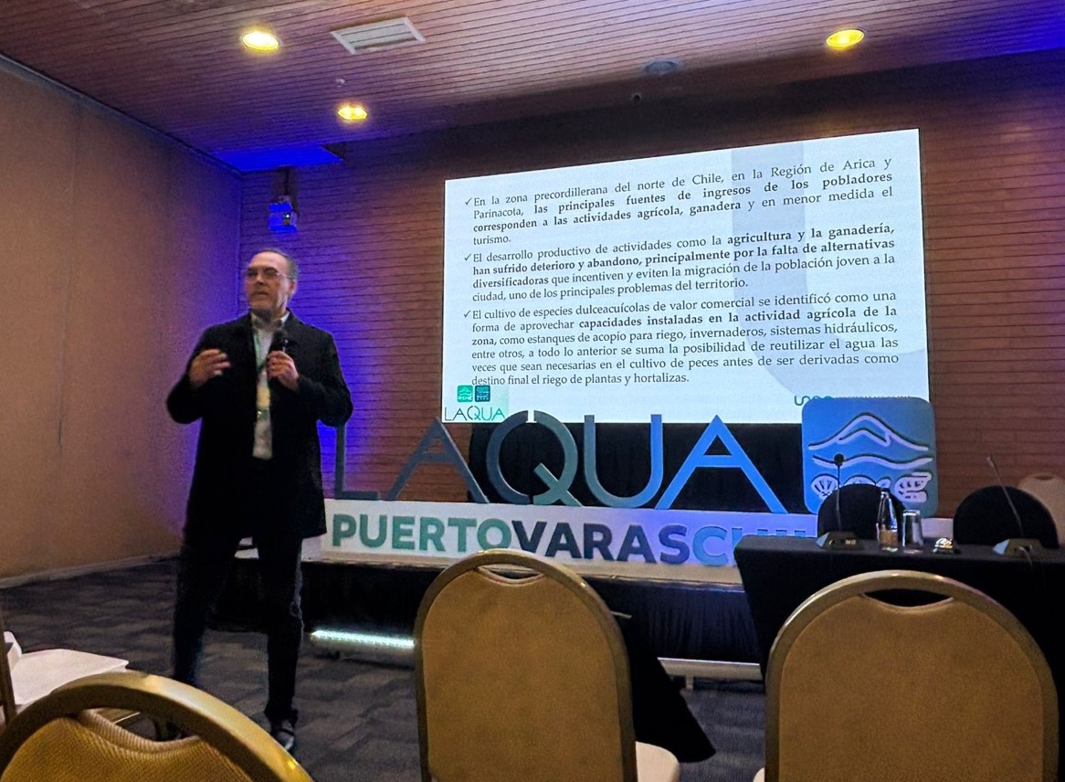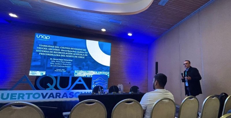 Durante su presentación, titulada “Viabilidad del cultivo intensivo de trucha arcoíris (Oncorhynchus mykiss) en sistemas de recirculación acuícola en precordillera del norte de Chile”, el investigador dio a conocer los resultados de un estudio pionero realizado en la localidad de Copaquilla, Región de Arica y Parinacota, donde se evaluó por primera vez la factibilidad de cultivar trucha arcoíris a 3.000 metros sobre el nivel del mar utilizando un sistema de recirculación acuícola (RAS).