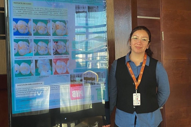 Briny Villavicencio Hernández, interna de la carrera de Odontología de la UNAP, calificó la jornada en Arica como una experiencia increíble. “Participar en la VI versión de la Macrozona Norte me permitió compartir con grandes profesionales y aprender muchísimo, además de estar junto a algunos de mis compañeros de carrera y curso. Presentar mi caso clínico en formato póster fue todo un desafío, pero también una oportunidad muy valiosa para crecer y seguir formándome. Me sentí muy bien recibida, al igual que mis compañeros. El ambiente fue muy agradable, lleno de compañerismo y conocimiento; realmente una experiencia que valió la pena”.