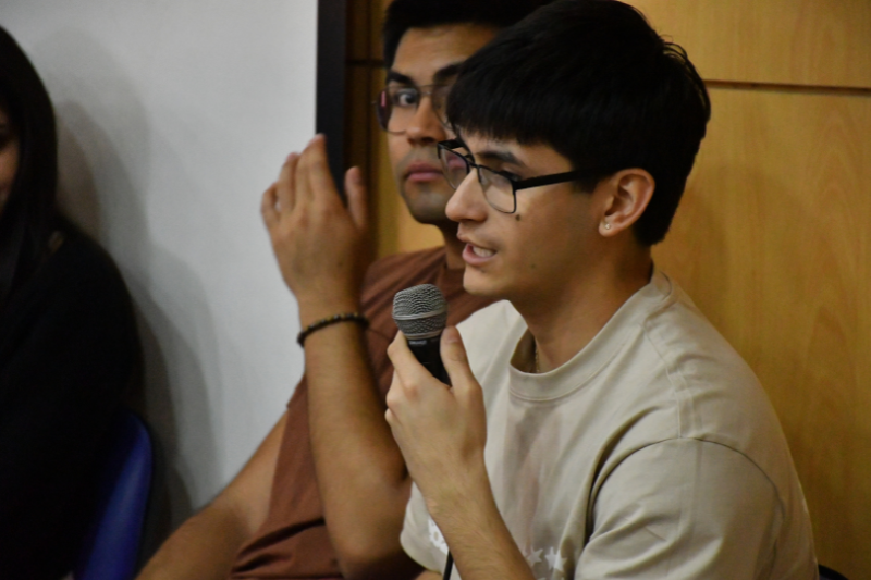 El decano de la Facultad de Ingeniería y Arquitectura, Miguel Segovia, estuvo presente en ambas jornadas del Quinto Panel Vocacional 2025, donde compartió con cerca de 160 estudiantes de distintos colegios de la región. Durante su intervención, relató su propia experiencia como estudiante de ingeniería, destacando los momentos positivos y también los desafíos que enfrentó en su trayectoria académica y profesional. Además, valoró el conversatorio con egresados y egresadas de la facultad, calificándolo como una instancia muy emocionante.