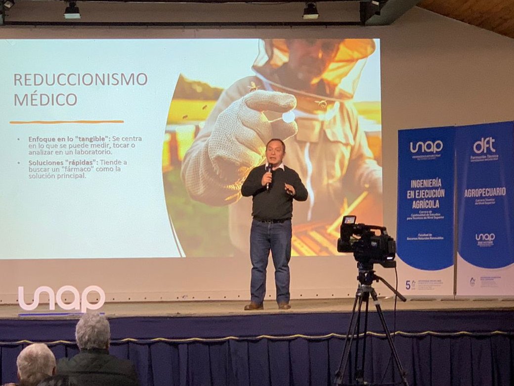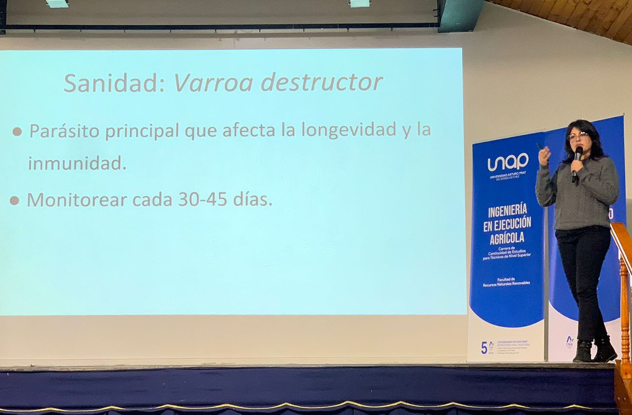 La iniciativa pasó luego al bloque de exposiciones, con “Colmenas fuertes, apicultura rentable”, dictada por la Zootecnista especialista en gerencia de recursos naturales, Mónica Cepeda Granados; y “Sanidad apícola: más allá de las enfermedades, hacia la prevención”, del Médico Veterinario Óscar Concha Riquelme; “El maravilloso mundo de la Apiterapia: descubriendo el poder curativo que habita en la colmena”, por la TNS en Enfermería de profesión y apiterapeuta, Nancy Muñoz Muñoz; finalizando con los “Reglamentos y modificaciones en el Sistema de Información Pecuaria (SIPEC) Apícola”, a cargo del Oficial del Servicio Agrícola y Ganadero (SAG) Oficina Victoria, Cristian León Torres.