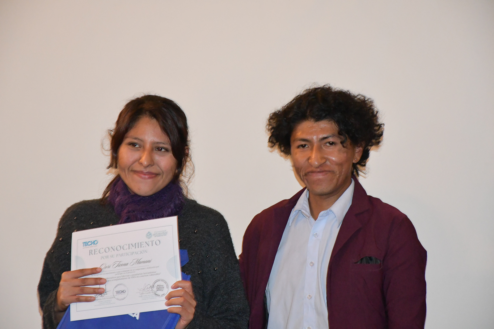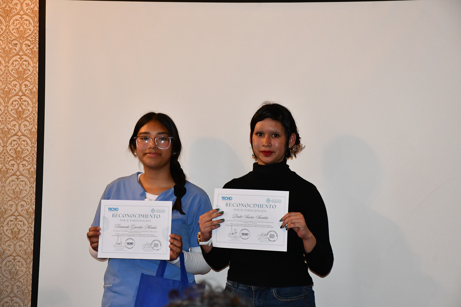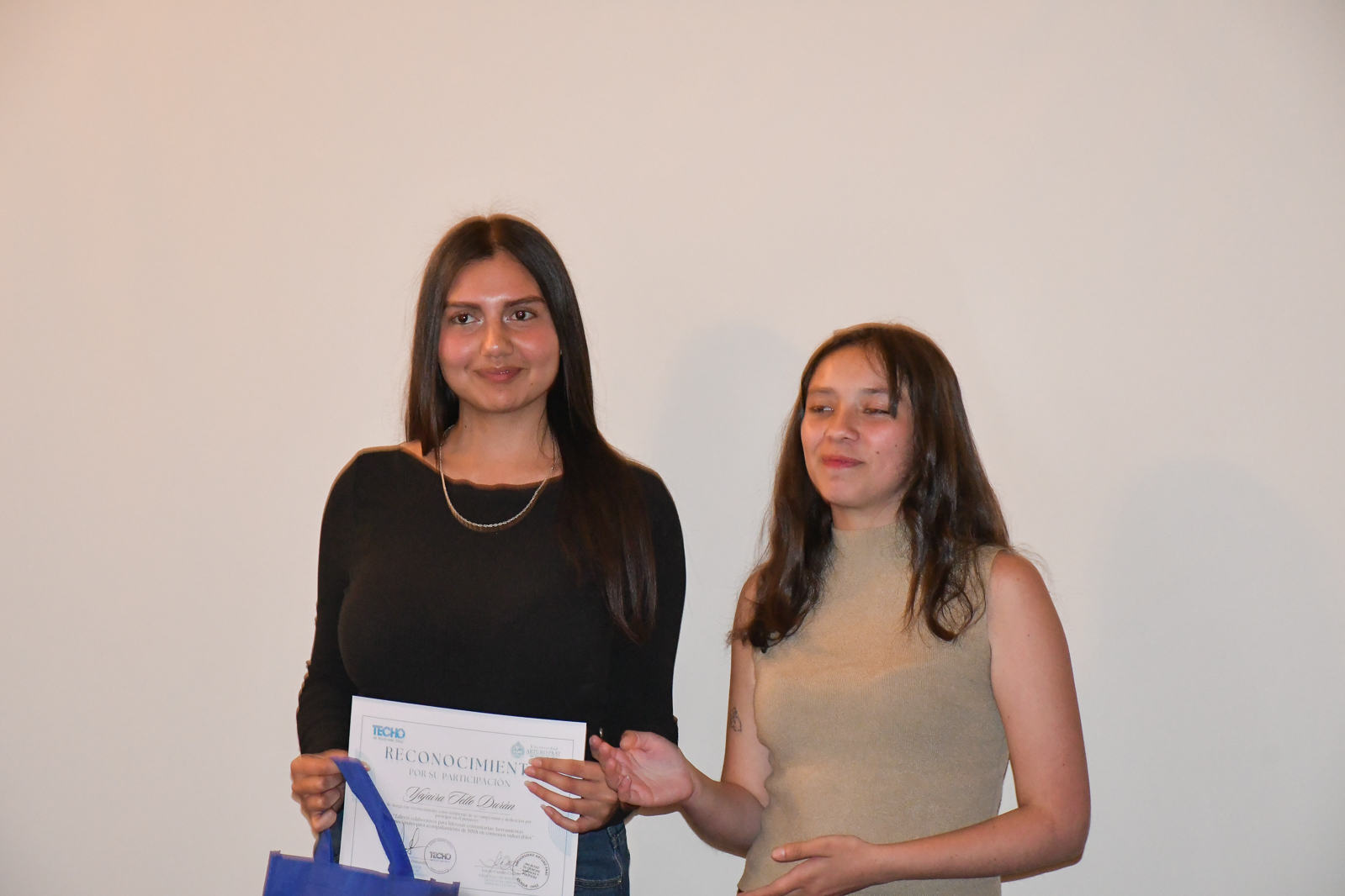 También, las estudiantes Darinka Montero y Almendra Villalobos recibieron un reconocimiento especial por su aporte profesional en la facilitación de las sesiones formativas del proyecto.