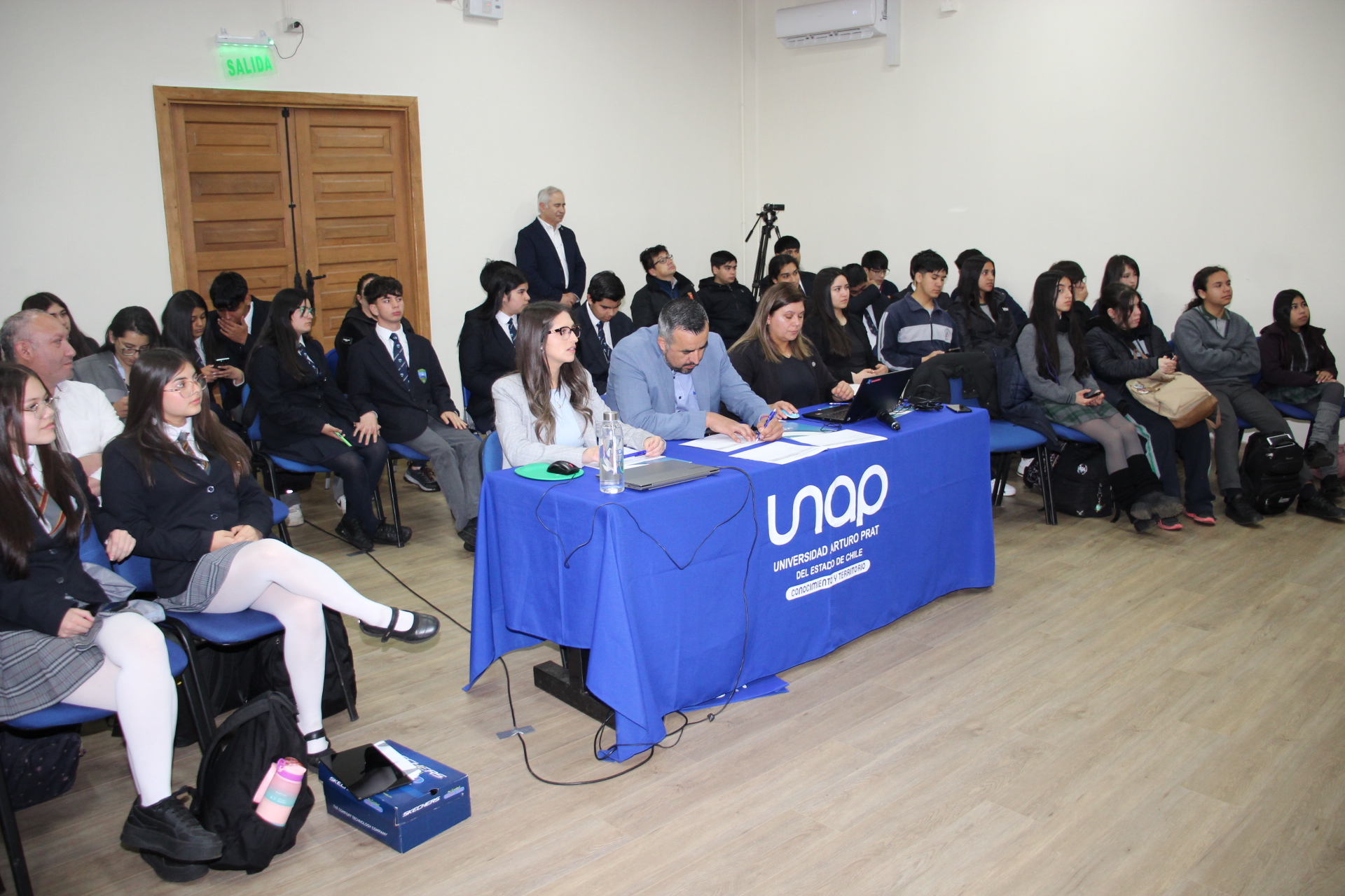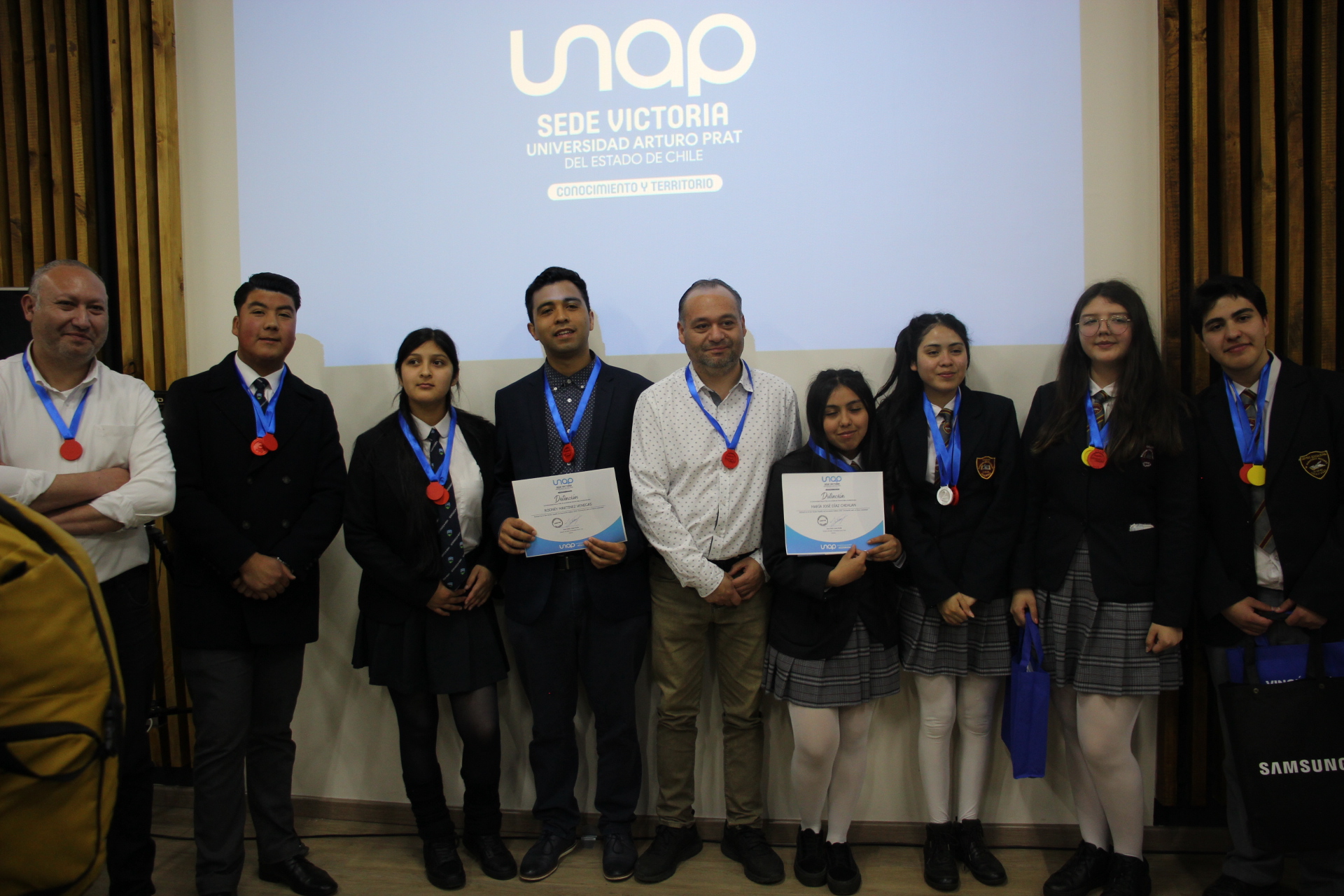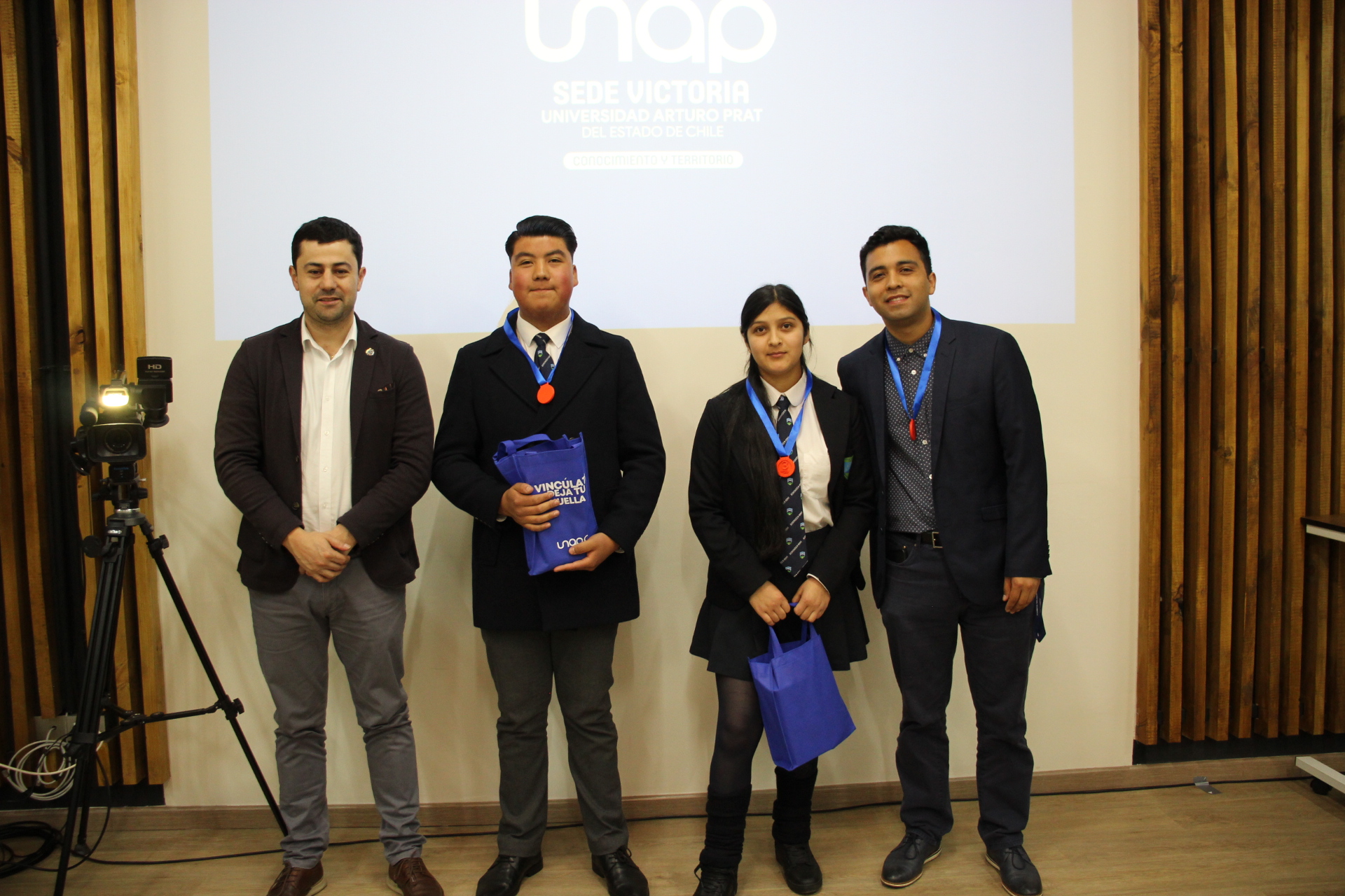 En la oportunidad, y tras la bienvenida del Director de Sede, Juan Pablo López Pinilla, el evento de cierre permitió que las y los participantes pudieran exponer sus ideas frente a un jurado compuesto por representantes del Centro de Emprendimiento y Negocios de la Municipalidad de Victoria, la Unidad de Admisión y el Departamento de Formación Técnica de la UNAP, los que entregaron los resultados del concurso, en donde el tercer lugar fue para el equipo de “Ecovolt”, integrado por Sayén Chehuan Candia y Vicente Orellana Rodríguez, del Liceo Bicentenario Politécnico Manuel Montt de Victoria; mientras que el segundo puesto fue para “Atmos”, presentado por María José Díaz Chehuan y Moira Morales Quipallán, del Colegio Wolfgang Amadeus Mozart de Collipulli; dando como ganadores en el primer lugar a “GuanTech”, de Josefa Astete Valdebenito y Giancarlos Cassab Oviedo, también del Colegio Wolfgang Amadeus Mozart.