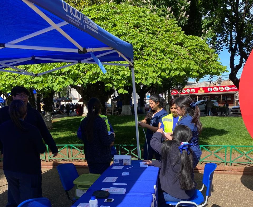 En la oportunidad, las unapinas y unapinos de segundo año, acompañados por la Jefa de la especialidad, Nadia Sandoval Mercado; y por la Docente Carla Ramiro Jara, efectuaron múltiples acciones educativas sobre el ACV, al igual que de otras enfermedades cardiovasculares, realizando controles de presión arterial, medición de glicemia capilar y una evaluación antropométrica para la circunferencia de cintura, peso y talla; entre otras actividades.