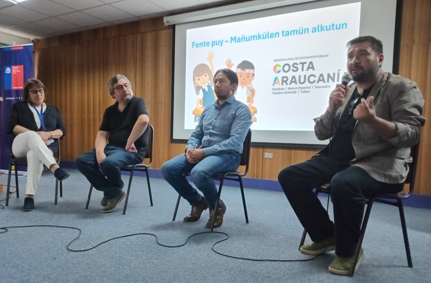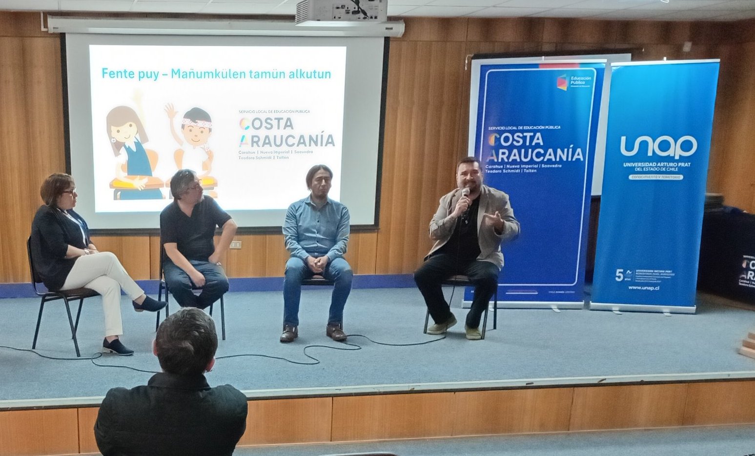 Celebrado en el Auditorio del Liceo Pablo Neruda en Temuco, el encuentro contó con palabras de bienvenida de la Subsecretaria de Educación Parvularia, Claudia Lagos Serrano -por video-; la representante del Departamento de Educación Municipal de Temuco, Mónica Figueroa Figueroa; el Encargado de la Unidad de Educación y Cultura de la Subdirección Nacional Sur de CONADI, Pablo Painemilla Ancán; y del Director (s) de la Universidad Arturo Prat Sede Victoria, Daniel Martínez Lema, continuando con la proyección de un video sobre la experiencia de inmersión lingüística del Programa de Educación Intercultural Bilingüe de CONADI en la lengua Rapa Nui.