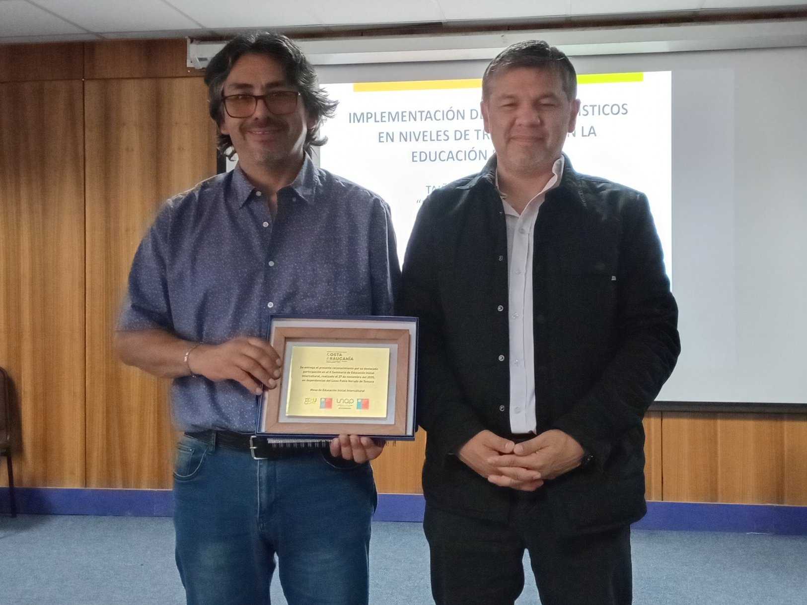 El Seminario llegó así a un conversatorio moderado por la Jefa de las especialidades de Educación Parvularia Intercultural (EPI) y TNS en Lengua y Cultura Mapuche en Educación Parvularia de la Sede Victoria, Claudia Baltierra Inostroza; y con los panelistas Marcos Nahuelcheo Parada, Asesor intercultural de JUNJI; y Osvaldo Quilaman Millao, Encargado de Educación Intercultural de CONADI; además de Domingo Oñate, espacio que también tuvo una notable participación del público, conformado en su mayoría por ELCIs de la región, estudiantes de primer y segundo año de EPI, representantes de la Municipalidad de Temuco, JUNJI y de SLEPCA, quienes alabaron la instancia, la que también entregó premios y reconocimientos a los expositores e integrantes de la audiencia.