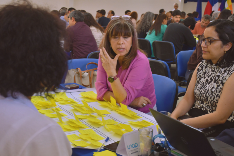 El taller se desarrolló bajo la metodología Espacio Abierto, con participación triestamental: académicos, administrativos y estudiantes. Durante la jornada se abordaron temas fundamentales para la vida universitaria, como docencia, investigación, vinculación con el medio y gestión institucional, además de analizar escenarios futuros que podrían impactar a la UNAP.