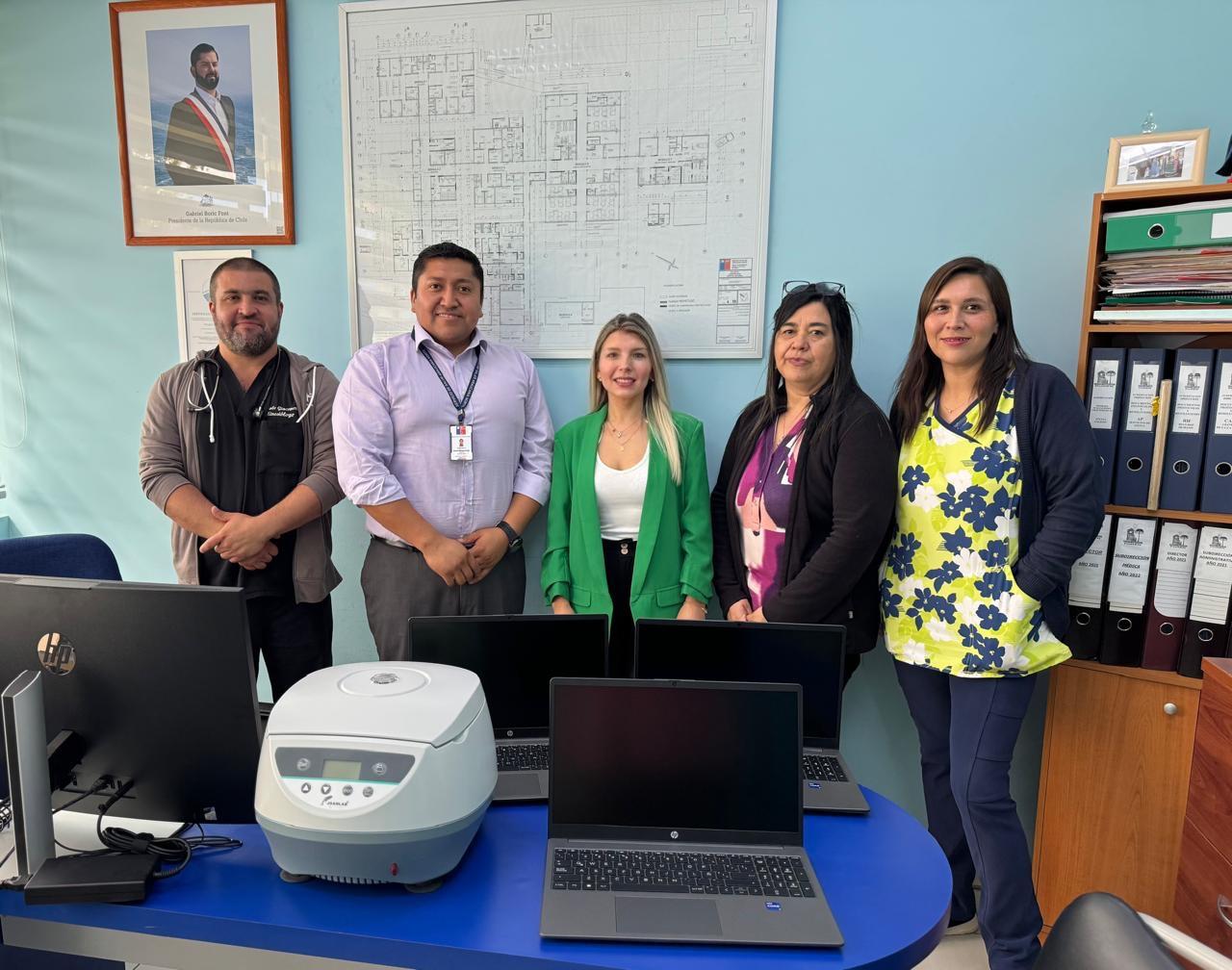 En la oportunidad, el principal objetivo del encuentro se tradujo en la recepción, por parte del Hospital, de tres computadores más una centrífuga para el procesamiento de muestras, acto destacado por Carolina Morales, quien además celebró la “excelente recepción brindada por el Hospital y por su Director, quien nos recibió en un ambiente de notable calidez. Esta acogida no solo facilitó el diálogo institucional, sino que también reflejó el compromiso del establecimiento con el fortalecimiento de los vínculos académicos”, indicó.