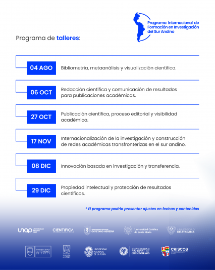 El programa está dirigido a académicas/os, docentes, estudiantes y profesionales vinculados a la investigación, con el objetivo de fortalecer sus capacidades y promover la generación de redes de colaboración científica en el territorio sur andino.