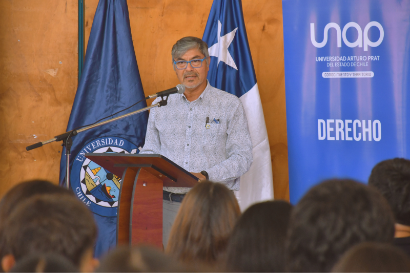 El lanzamiento contó con la participación del decano de la Facultad de Ciencias Jurídicas y Políticas, Hans Assmussen Mundaca, y del decano de Ingeniería y Arquitectura, Miguel Segovia Rivera, además de autoridades regionales, académicos, académicas y estudiantes que repletaron el recinto.