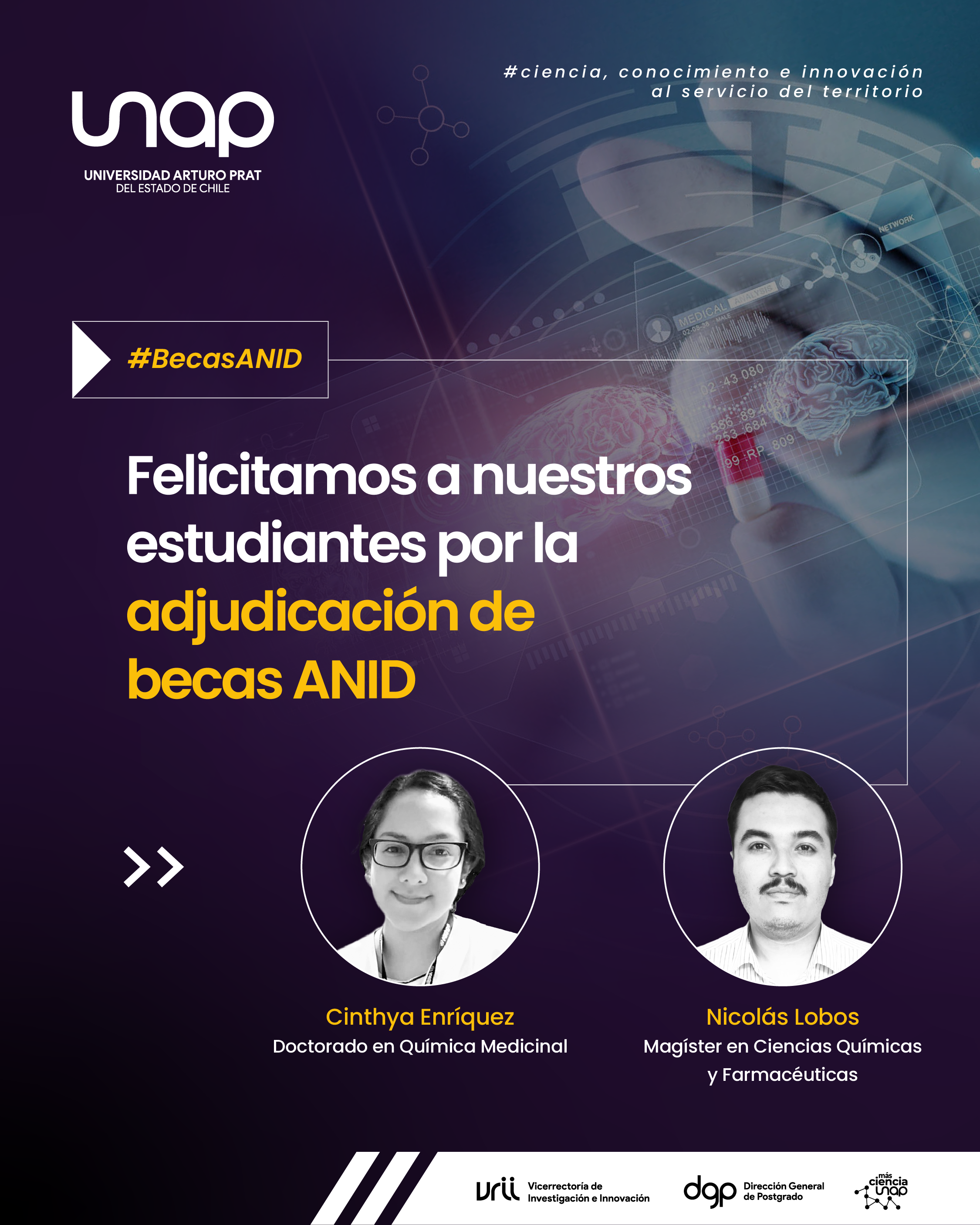 La adjudicación de becas ANID permitió a Cinthya Enríquez y Nicolás Lobos, estudiantes de la Universidad Arturo Prat, avanzar en su formación de posgrado en química medicinal y biotecnología, consolidando sus trayectorias científicas y evidenciando el impacto del financiamiento público en el desarrollo académico desde regiones.