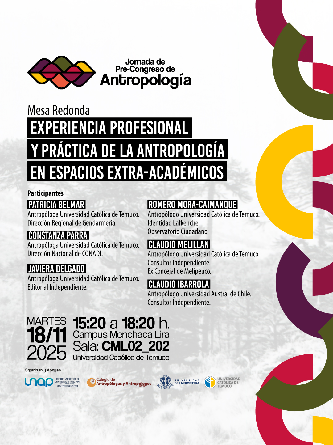 “Los congresos chilenos de antropología, son un espacio muy importante para nuestro colegio ya que son una instancia en que junto con discutir y presentar el desarrollo de la antropología en los diversos campos que la componen, son momentos de encuentro entre colegas que permiten el fortalecimiento de redes de trabajo y colaboración, la actualización en torno a temáticas en común, metodologías y otros ámbitos de nuestro quehacer profesional. El congreso en la ciudad de Victoria, será sin duda un nuevo espacio de encuentro y diálogo entre las diversas formas de la antropología, la academia, el trabajo aplicado y comprometido, junto con las voces de los territorios y comunidades locales que nos acompañarán en este importante evento”.