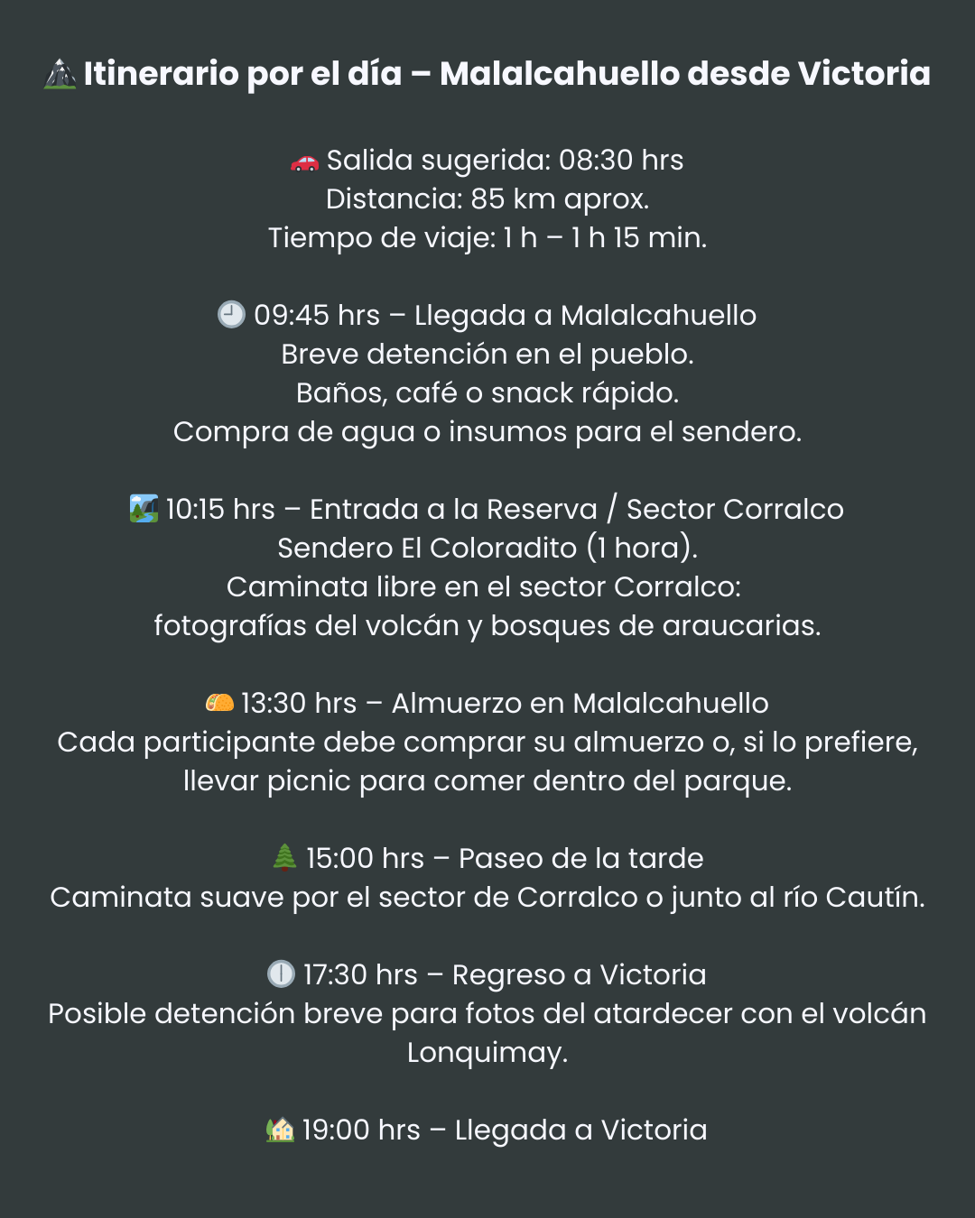 Actividad con cupos limitados. En el siguiente enlace completa el formulario y realiza la reserva: Inscripción – Visita a la Reserva Nacional Malalcahuello