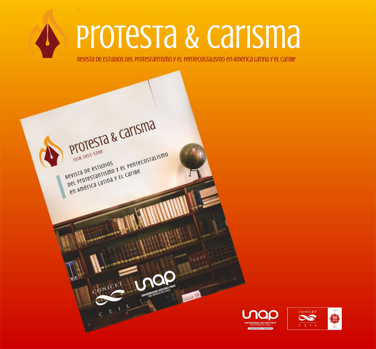 Protesta y Carisma (P&C) es una revista de frecuencia continua de estudios sobre el protestantismo y el pentecostalismo desde las ciencias sociales y las humanidades. Si bien es una revista que priorizará las investigaciones sobre las dinámicas de los protestantismos y pentecostalismos en América Latina, también admitirá trabajos de otras latitudes. Se recibirán artículos originales e inéditos resultantes de investigaciones empíricas y/o teóricas desde las ciencias sociales (sociología, historia, antropología, geografía, ciencias políticas, trabajo social, educación, derecho, comunicación, psicología, pedagogía) y las humanidades (musicología, filosofía, literatura, teología, artes, arquitectura, etc) Se reciben artículos en español, inglés y portugués.
