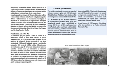 emblemático en la historia local, Alfredo Loayza Bustos. chilenas se comienza a aplicar desde 1967, la Prueba de acuerdo del Consejo de Rectores, convocó a una comisión